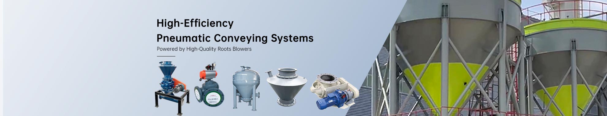 Roots blowers, air compressors, centrifugal fans, and gas storage tanks provide a stable and continuous gas supply for the system. Among them, the Roots blower serves as the core power equipment of the pneumatic conveying system, ensuring stable air volume and pressure output.